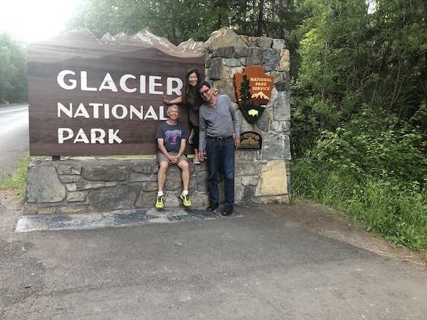 June 30, 2019 Lily and Dennis visit. Among our adventures with them was Sandy's first time to Kintla Lake where we kayaked. The Boundary Mountain range separates the lake from Canada (it's a huge wall :-))